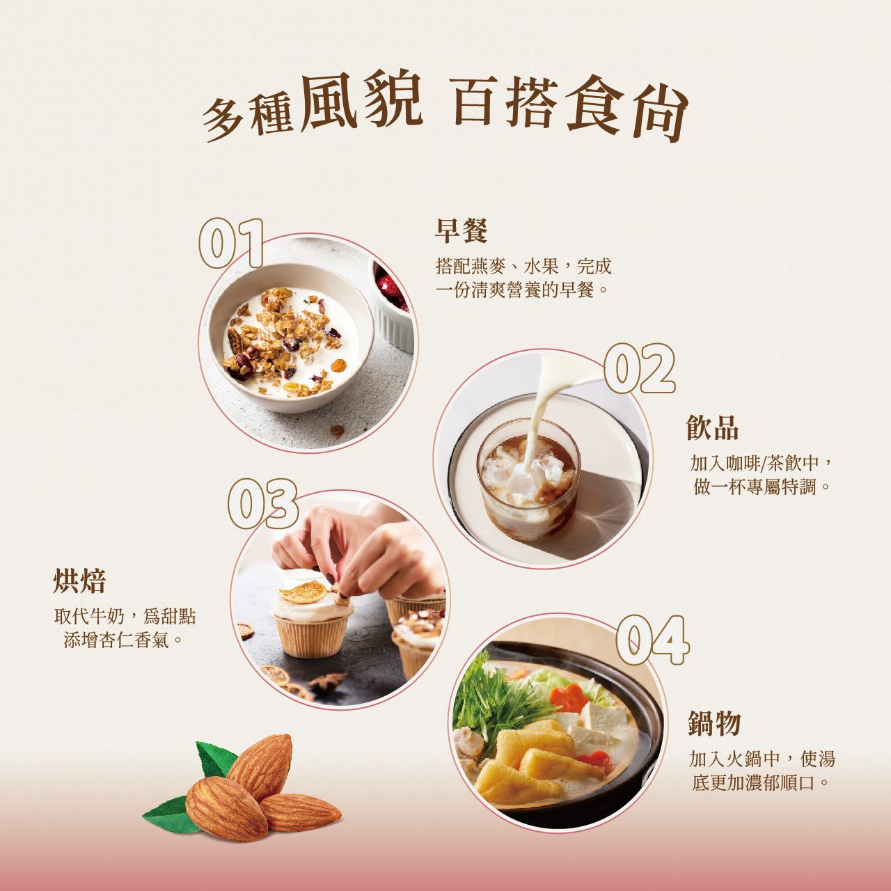 - 享受自然的甘甜,讓每一口都充滿滿滿的杏仁風味,快來體驗健康新選擇吧!