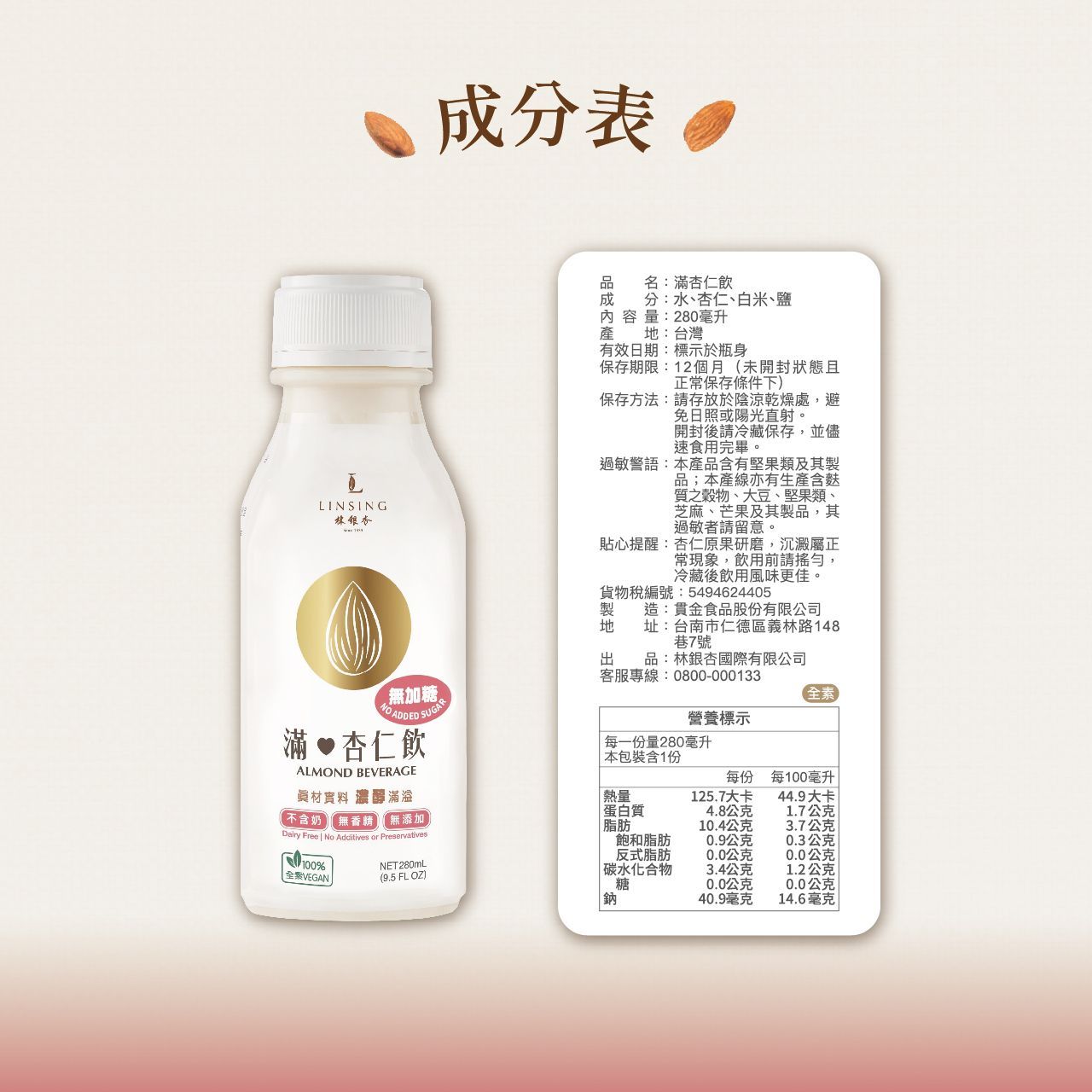 《LINSING 林銀杏官方直營》【160%加厚無糖】滿杏仁飲280ml 6入禮盒/