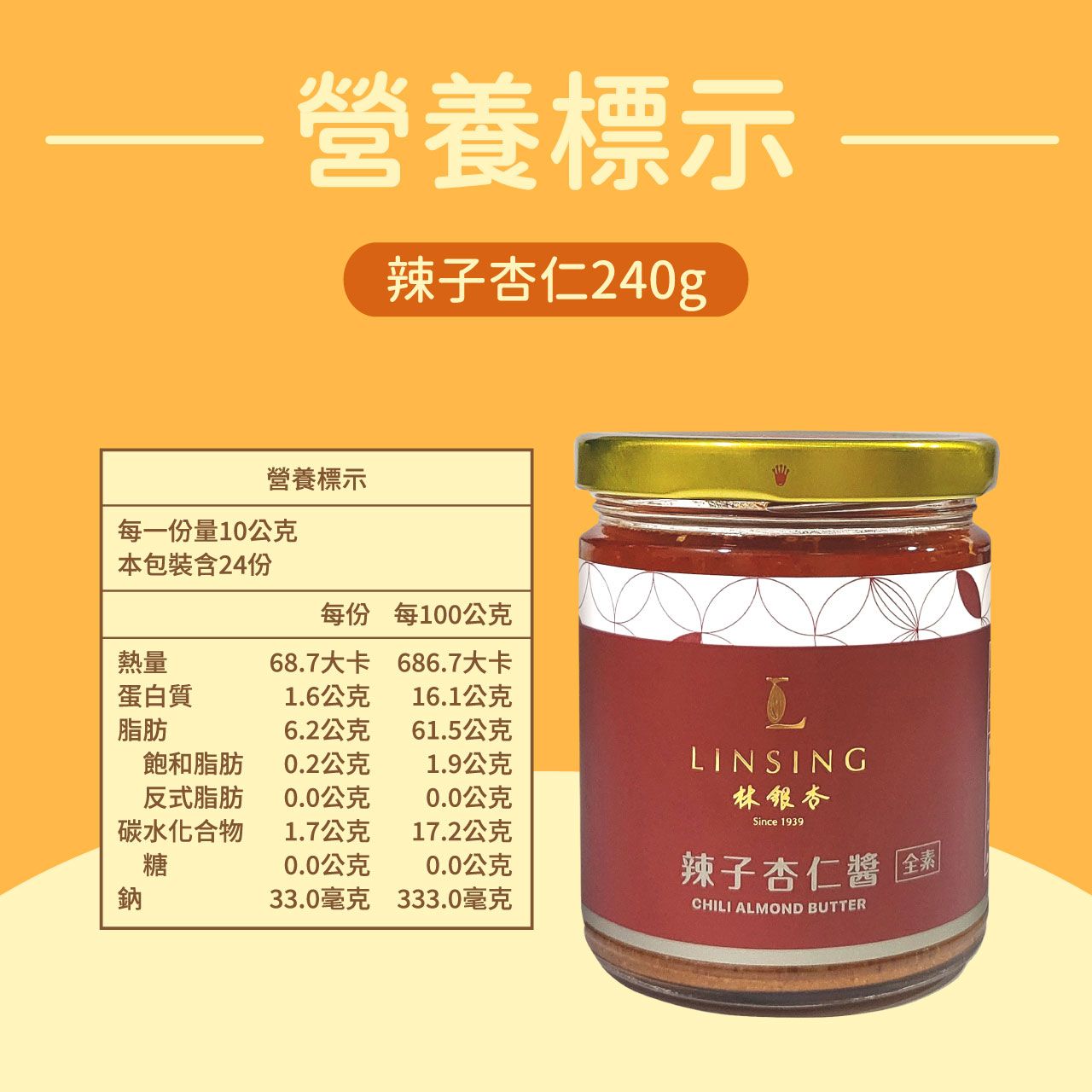 《LINSING 林銀杏官方直營》辣子杏仁醬240g